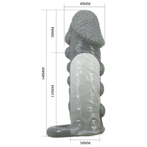 Серая насадка Jaylen с подхватом мошонки и наростами - 14 см.