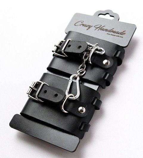 [NAME] => Чёрный кожаный бондажный комплект для фиксации рук к поясу