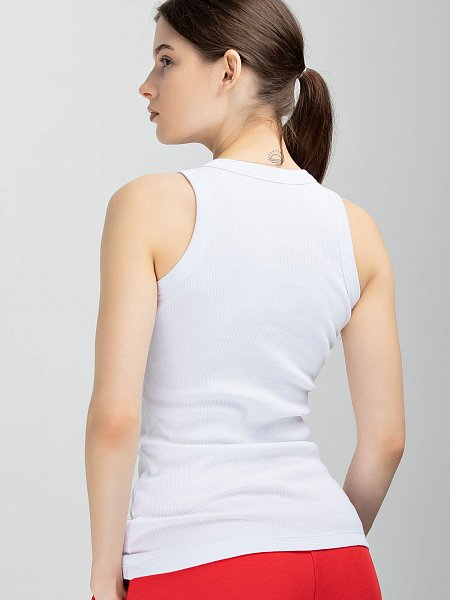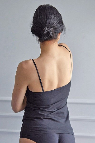 Майка на тонких бретелях из шелковистой микрофибры с плоской окантовкой.
