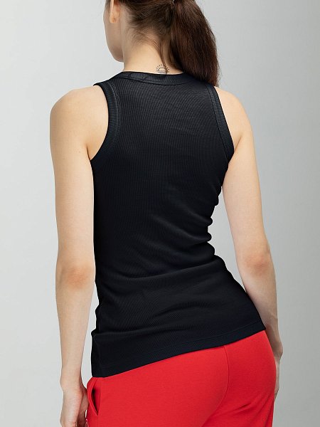 Женская базовая майка с американской проймой, в мелкий рубчик. Это идеальный вариант для жаркого лета и отличный нижний слой в межсезонье. Трендовый силуэт майки делает её необходимым предметом в каждом гардеробе.