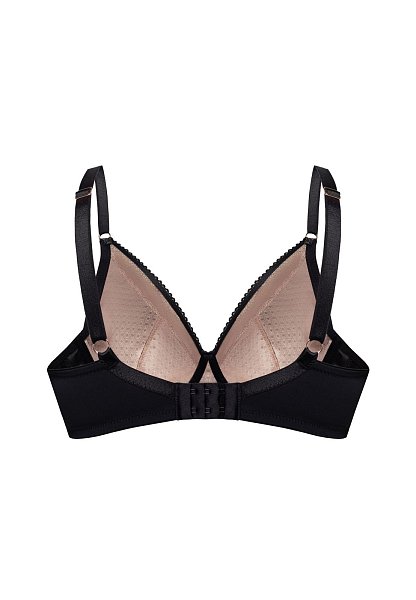 Бюстгальтер Renee M бралетт выполнен на косточках, чашки мягкие, шитые из сетки с геометрическим рисунком, продублированы телесной сеткой. Пояс из микрофибры продублирован сеткой. Бретельки пришиты, регулируются по длине. На спине застёжка на удлинитель, фурнитура металлическая цвета меди.