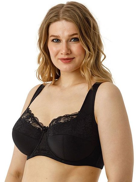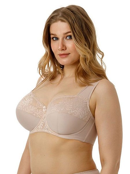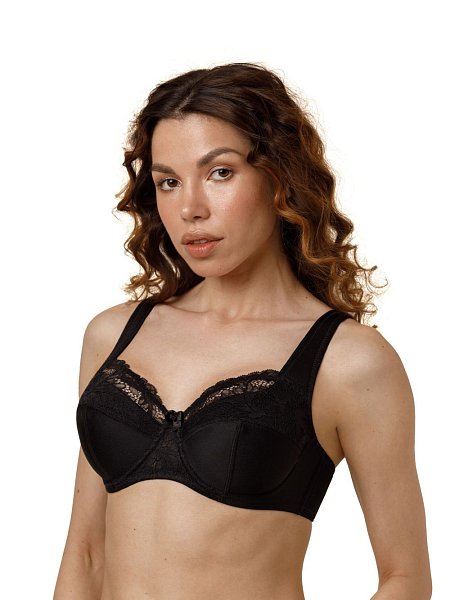 Бюстгальтер на каркасах с мягкой чашкой. Чашки имеют Т-образное членение, что позволяет придать груди правильную округлую форму. Широкий стан с боковыми упругими пластинами плотно облегает тело и обеспечивает стабильную комфортную посадку бюстгальтера на фигуре.
