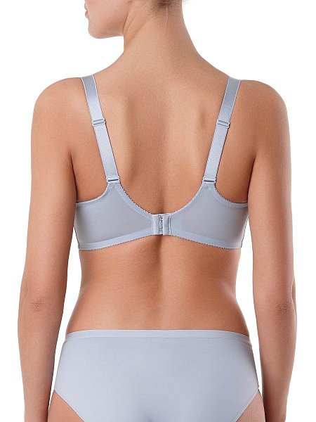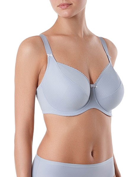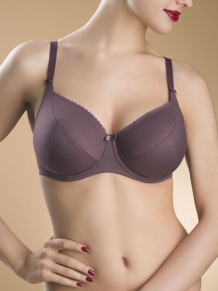 Бюстгальтер с мягкой чашкой, на каркасах, из неэластичного жаккардового полотна. Чашка с тройным диагональным членением, нижние детали ламинированы хлопком для поддержки и комфорта. Стан из упругого трикотажного полотна, функциональные тесьмы и бретели для уверенной поддержки.