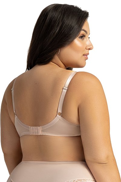 Бюстгальтер на каркасах с мягкой чашкой. Чашки овальной формы с диагональным членением создают округлую наполненную форму, эффектно приподымая грудь. Широкий стан плотно облегает тело, снимает нагрузку с плечевого пояса и обеспечивает стабильную комфортную посадку бюстгальтера на фигуре.