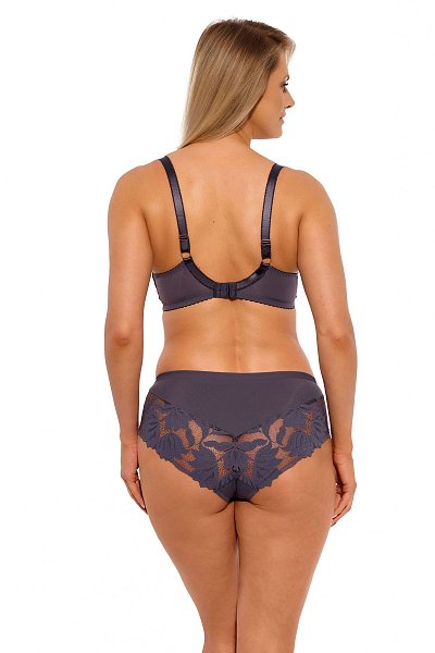 Бюстгальтер 1134 Keto PU выполнен на косточках, с дополнительными боковыми поддержками, чашки шитые, нижняя часть на тонком поролоне, внутренняя сторона прошита хлопковым трикотажем, верхняя часть чашки из тонкой сетки, внешняя часть из кружевного полотна с растительным рисунком, спинка из стабилизирующей сетки. Бретельки не отстёгиваются, регулируются по длине, на спине застёжка - удлинитель на крючках, фурнитура металлическая крашеная.