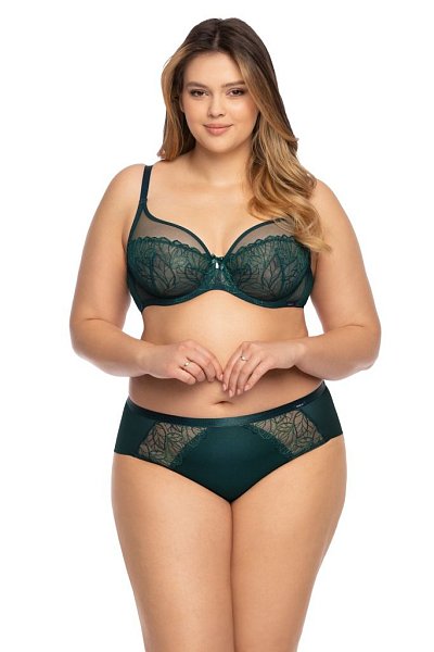 Трусики-шорты Emily спереди из вискозного полотна, по бокам вставки из сетки с вышивкой в тон, спинка из сетки, сложенной вдвое. Ластовица проложена 100% хлопком.