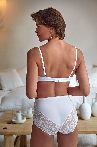 Трусики-слипы с высокой талией из мягкой микрофибры и вставок из объемного кружева. Линия открытия ножки выполнена по бесшовной технологии.